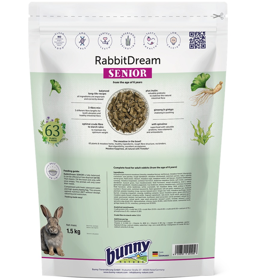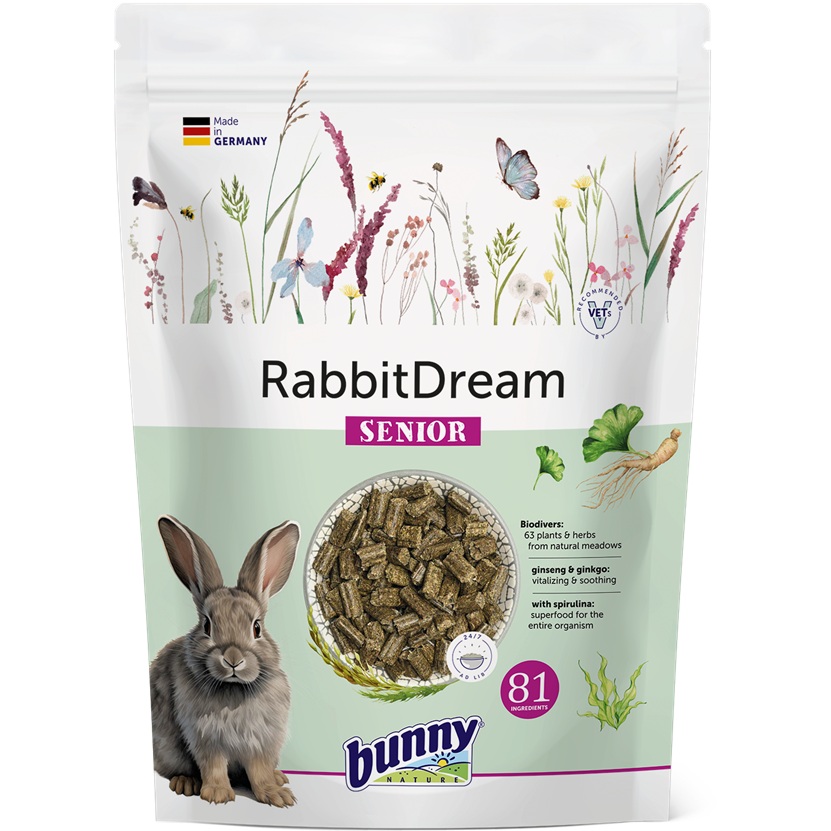 Bunny Nature RabbitDream Senior is complete food for dwarf rabbits from the age of 6 years and offers: